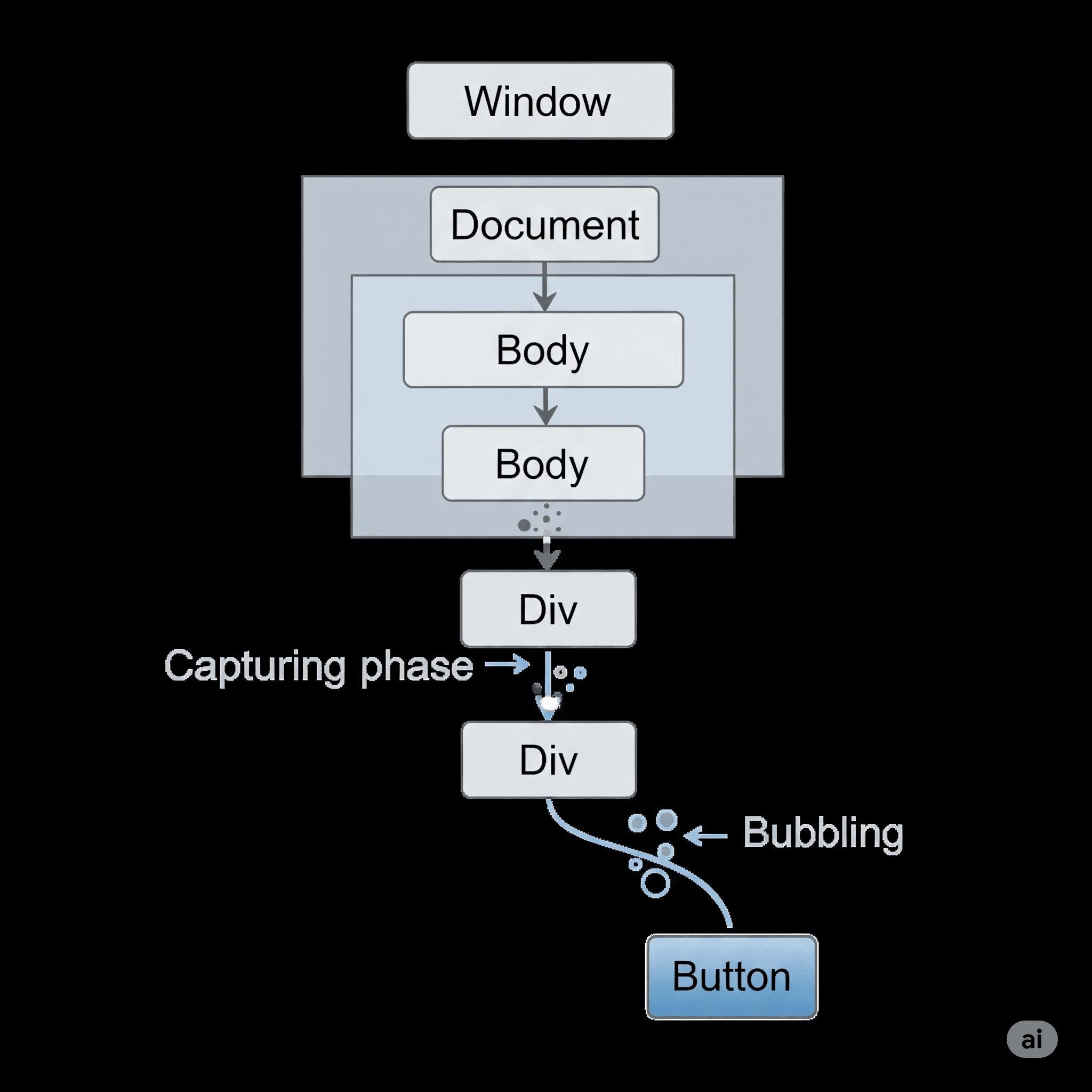 When you click on a button on a webpage, it's not just the button that "hears" the click. That click is like a pebble dropped in a pond, creating ripples that travel across the entire web page's structure, known as the DOM (Document Object Model) tree. This journey is called Event Propagation.